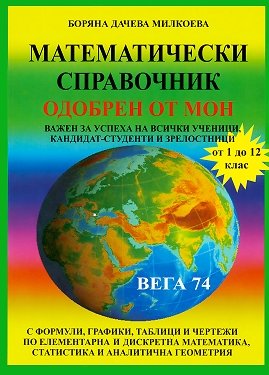 С формули, графики, таблици и чертежи по елементарна и дискретна математика, статистика и аналитична геометрия.Целта на книгата "Математически справочник" е да представи на учениците, зрелостниците и кандидат-студентите пълна информация за математическите понятия, формули, графики, аксиоми, теореми, чертежи и таблици.Предназначението на справочника е да подпомогне учениците от 1 до 12 клас в училище и на конкурсни изпити за постигане на отличен успех. В първите глави "Въведение в аритметиката и алгебрата" и "Въведение в геометрията" основният курс по математика е подреден по класове - от 1. до 8 клас, а след това са разгледани всички, елементарни функции, уравнения, неравенства и геометрични фигури с основните им свойствата.Изказвам своята искрена признателност на рецензентите доц. д-р Й. Кучинов, г-н В. Величков, г-н П. Недевски и на издателя инж. Стоян Беев за ценните им компетентни съвети.