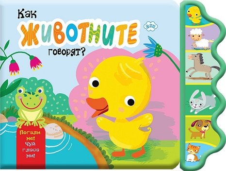 Книжката на издателство Пух има текстилни капачета на всеки разтвор. Надникни под тях и виж кой се е скрил там. След това натисни шестте бутончета, за да чуеш гласовете на животните, скрити в книжката.