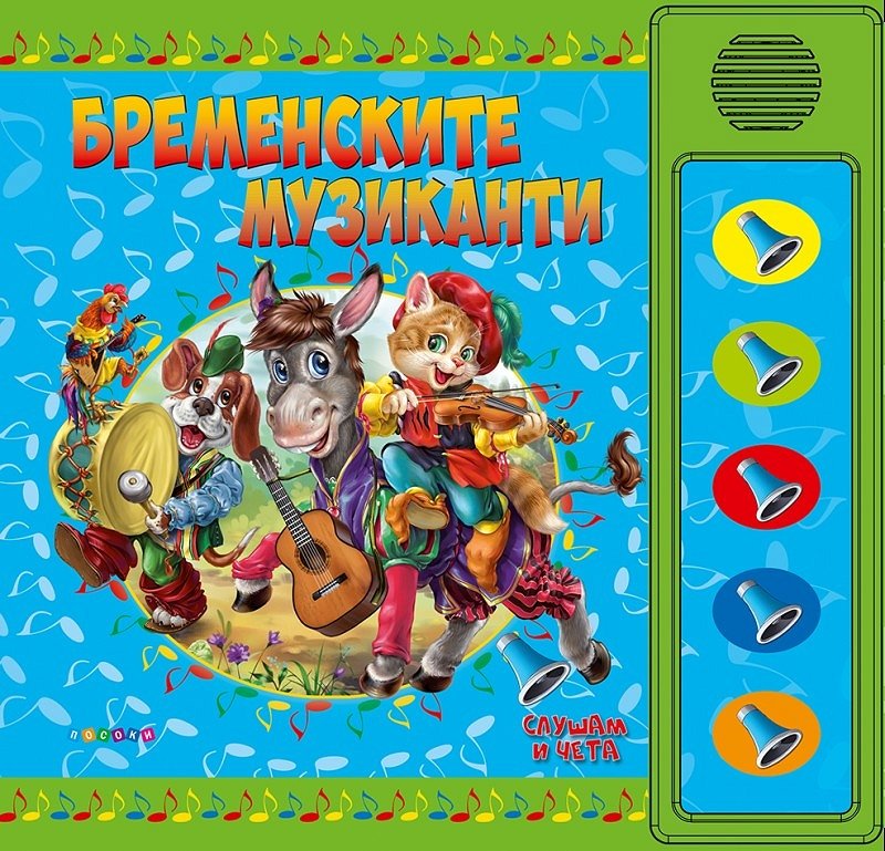 Книжката съдържа приказката "Бременските музиканти" и е част от поредицата "Слушам и чета". Подходяща е за деца от 2 до 5 години. Корицата е твърда, подплатена с дунапрен.