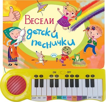 Картонена книжка с цветни страници и пластмасово пиано към нея. Малките музиканти ще могат сами да изсвирят популярни мелодии, като натискат цветните клавиши и спазват показаната последователност.Книжката съдържа 5 любими детски песнички: