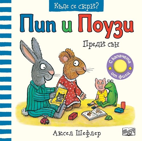 Пип и Поузи играят на криеница преди сън. Къде е Пип? Повдигнете мекичкото капаче и помогнете на Поузи да намери своя приятел.Книжката е с твърди картонени страници.