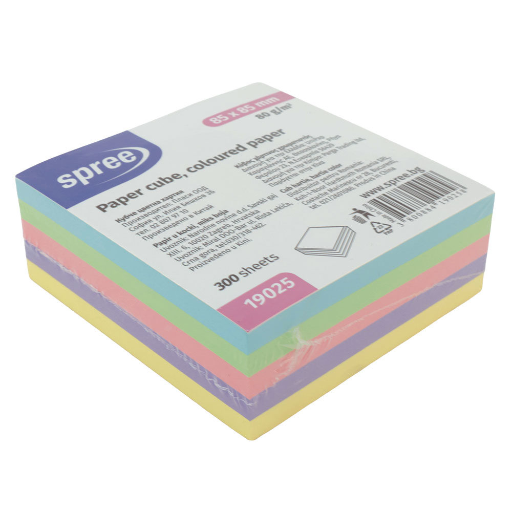 Кубче цветна хартия, 85х85 мм, 300 листа, 80 г/м2