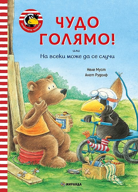Животните в гората решават да направят театрално представление. Мечокът Еди много иска да участва и да покаже на приятелите си колко добре кара триколка! Но денят не е добър за него. Първо чупи стол , после, докато носи вода, всичко се намокря и накрая театралната сцена се срутва. Нищо чудно, че приятелите му са ядосани. Но мечокът Еди не е счупил нещата нарочно и подобни инциденти могат да се случат на всеки, нали?Весела история за нещата, които се объркват, но и поправят.Книжката е част от поредицата "Гарванчето Чорапчо" на Неле Муст и Анет Рудолф.