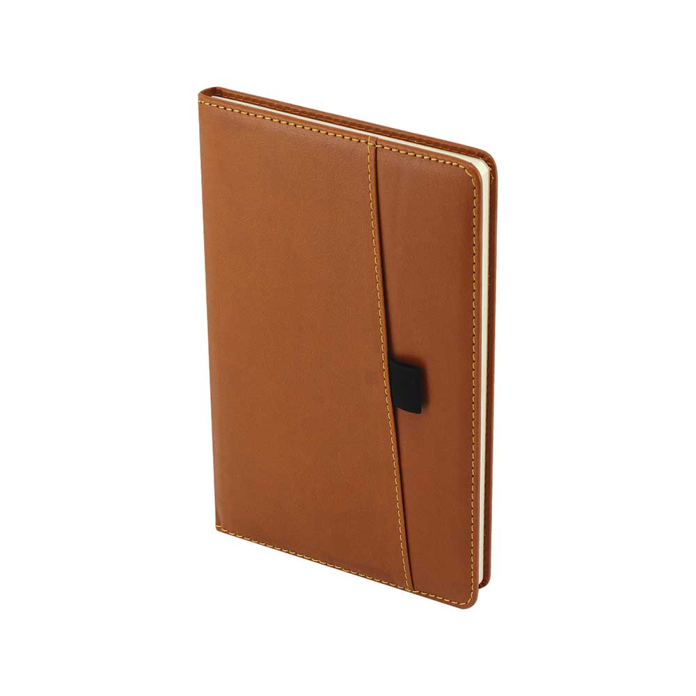 Бележник 14х21 изк.кожа с джоб за GSM и химикалка, св.кафяв, 112 л., шит