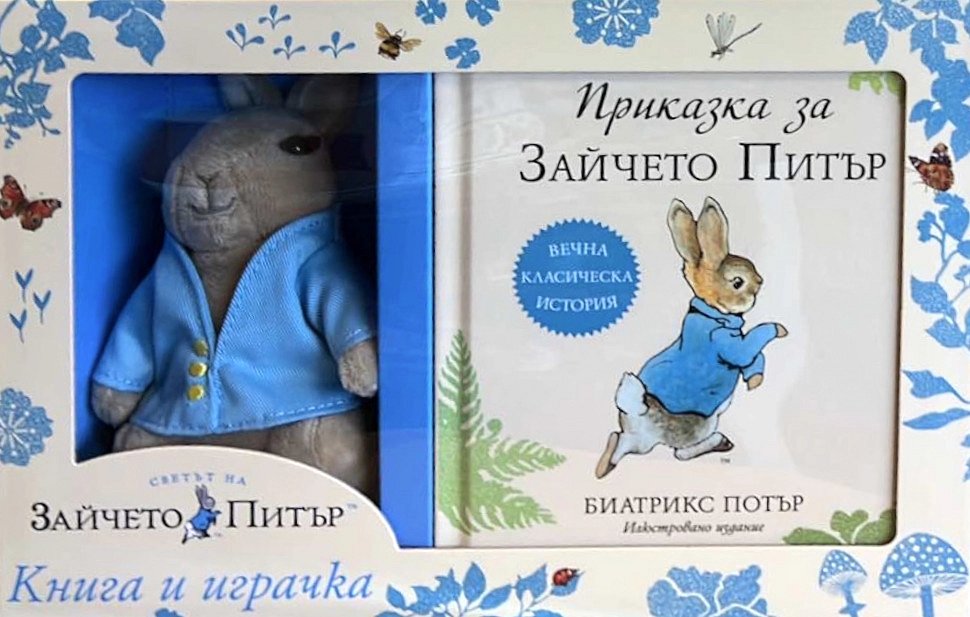 Обичаният по цял свят герой Зайко Питър е палав и непокорен, докато един ден не си навлича беди, подгонен от свадливия господин Макгрегър - негов съсед. Избягвайки от градината му, след редица опасности, Питър се прибира в дома на Майка Зайка, която обича да го успокоява винаги с чай от лайка.Приказката е написана за петгодишния Ноел Мур, син на бившата гувернантка на Потър, Ани Картър Мур, през 1893 г. Историята е преработена от Потър през 1901 г., но е отпечатана в издание от Фредерик Уарн енд Ко след една година, през 1902 г. Книгата е превеждана на 36 езика и с 45 милиона продадени копия - една от най-продаваните книги в историята.Изданието на КК Труд с класическата приказка на Биатрикс Потър е в луксозна кутия с прекрасно малко плюшено Зайче Питър в оригиналното синьо палтенце. То е страхотен подарък за всяко малко дете, но и защо не за семейната библиотека. Играчката е изработена от безопасни материали.Комплектът се състои от: