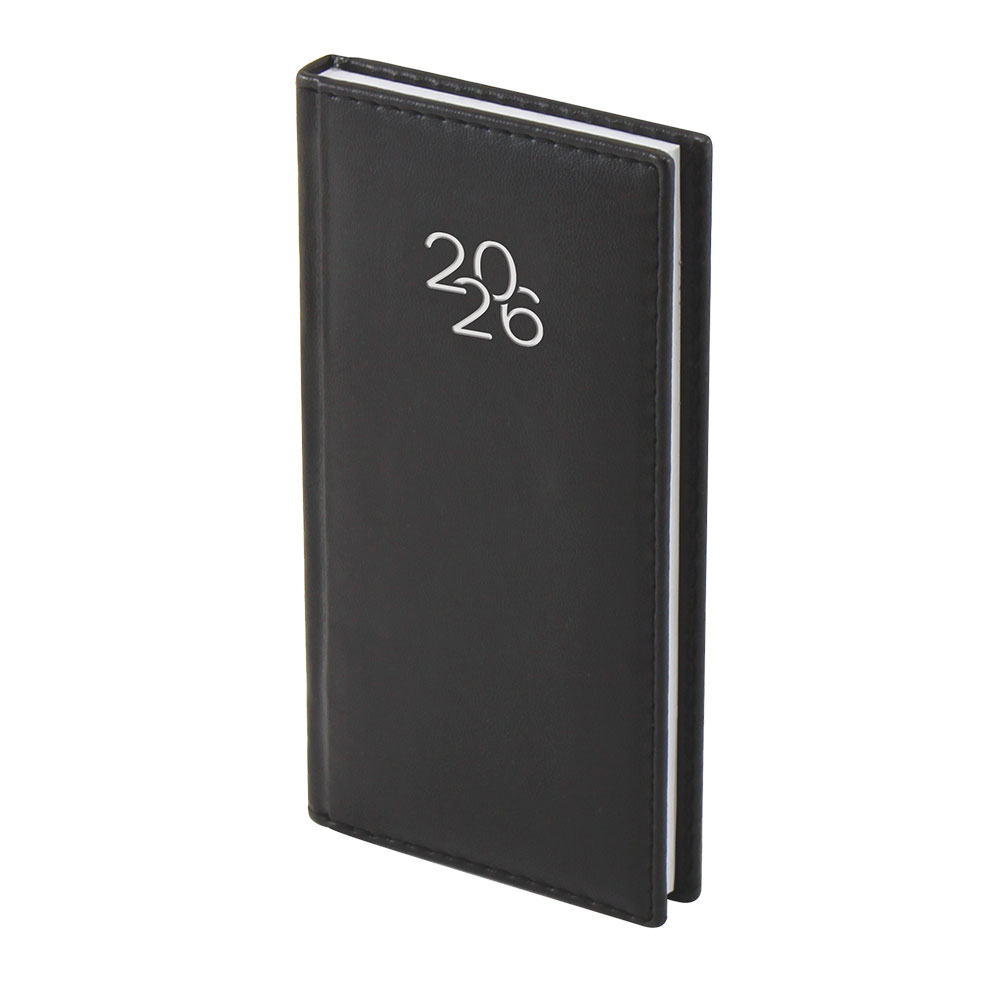 Бележник с дати 8х16 изк.кожа с шев черен, 64 л.