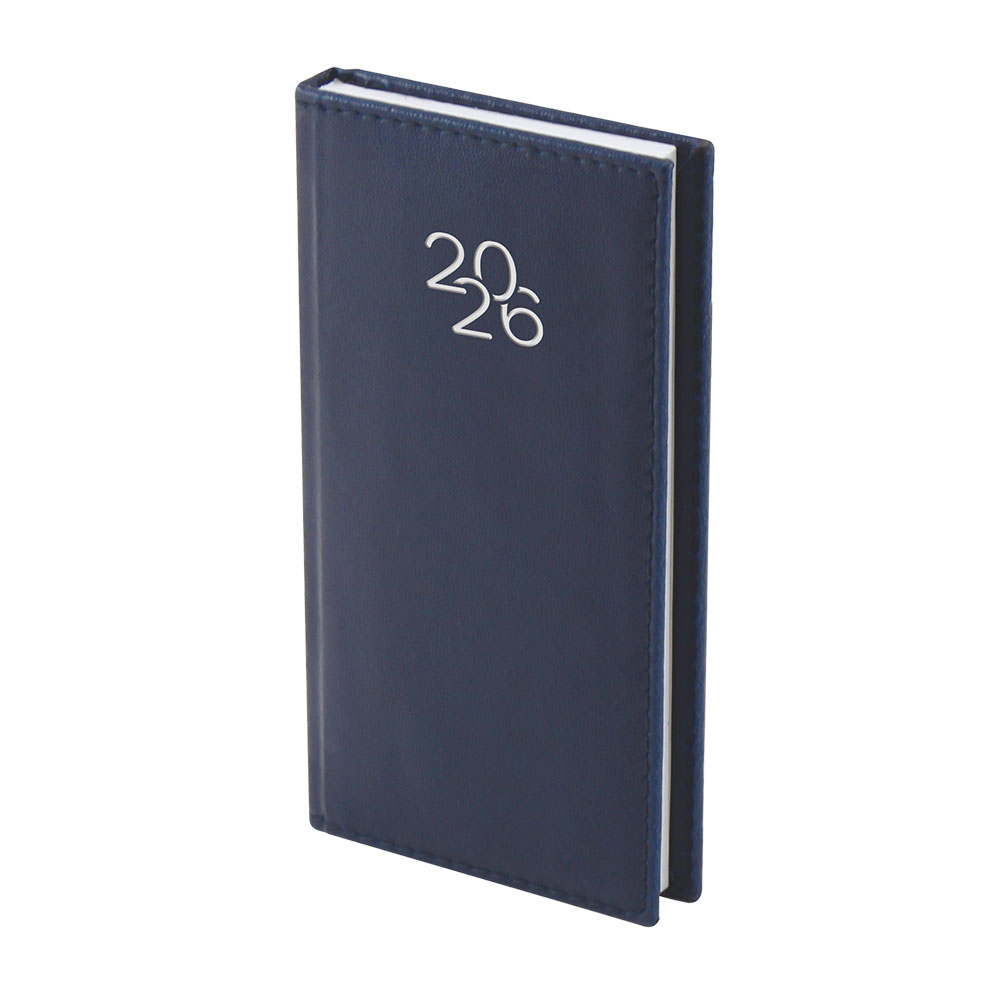 Бележник с дати 8х16 изк.кожа с шев т. син, 64 л.