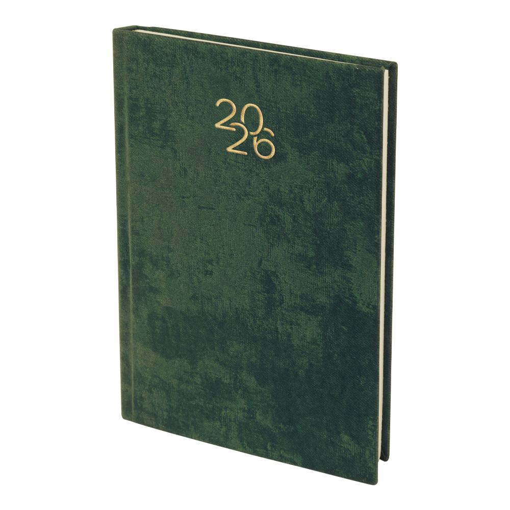 Бележник с дати 14х20 изк.кожа Велур зелен, 168 л. сл.кост