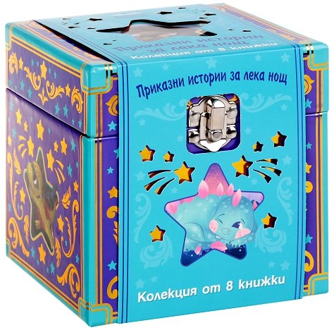 Кутията, във форма на приказно ковчеже, е с позлатени детайли и съдържа 8 чудесно илюстрирани книжки с рими и приказки за забавни и весели приключения! Всяка една от книжките е с меки корици, 24 цветни страници и с размери 11.5 x 11.5 cm.Книжките от комплекта са: