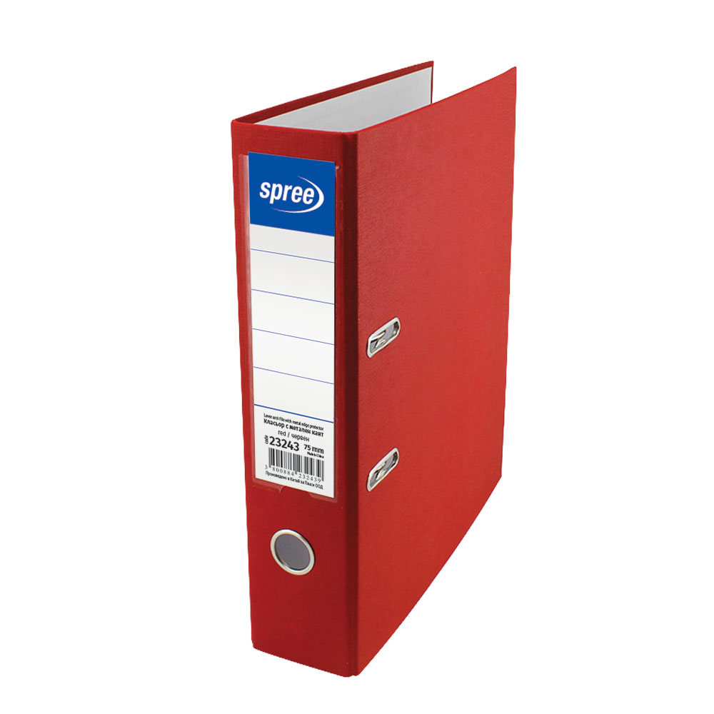 Класьор с метален кант А4, 75 мм, PP, червен