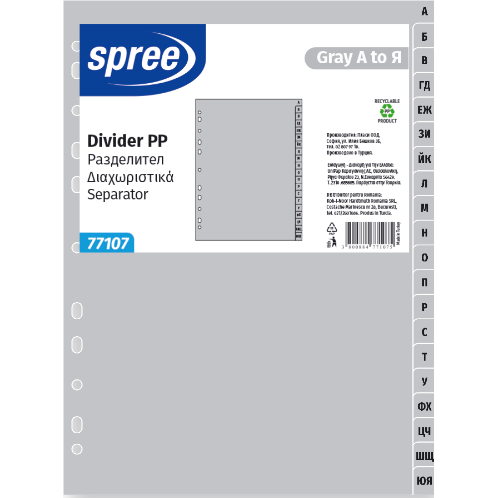 Разделител РР, А до Я, сив