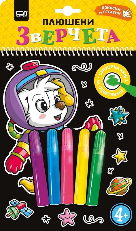 Плюшени зверчета тренира фината моторика и сензорното развитие, докато осигурява часове наред забавления с оцветяване на сладки животинки и отгатване на весели римувани гатанки. Фонът е покрит с черен велур, който осигурява сетивно преживяване и ограничава излизането от линия. Благодарение на перфорацията готовите рисунки се отделят лесно, за да се сложат в рамка.