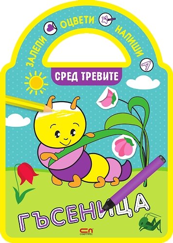 Забавна книжка с развиващи упражнения за най-малките!Сред тревите се крие вълнуващ свят и тази книга ще помогне на малчуганите да го открият, докато лепят цветните стикери, оцветяват картинките и правят първи стъпки в изписването на думи.Книжката помага на децата да развиват своите умения самостоятелно: