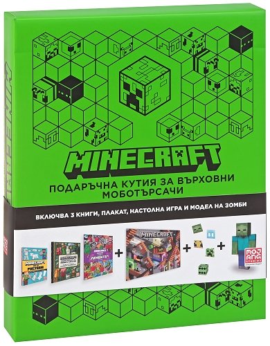 Ти си запален изследовател и знаеш всичко за всички мобове от близо и далеч? Значи тази Minecraft: Подаръчна кутия за върховни моботърсачи е точно за теб!Комплектът съдържа 3 издания, с помощта на които ще обогатиш още повече познанията си по темата с любимите ти мобове. Освен това ще се научиш да рисуваш мобове и ще ги намираш на нула време, скрити из страниците. За да е забавлението пълно, в кутията ще откриеш още плакат, мобомбастична настолна игра и модел на зомби.Minecraft: Подаръчна кутия за върховни моботърсачи е идеалният подарък както за млади, така и за възрастни почитатели на играта.Комплектът съдържа::