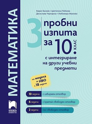 Помагалото е създадено специално, за да осигури уверена и успешна подготовка на учениците от 10. клас за Националното външно оценяване по математика по новия модел на Министерството на образованието и науката. То отговаря изцяло на съвременните изисквания, като поставя акцент не само върху знанията, но и върху тяхното практическо приложение в реални и междупредметни ситуации.В изданието ще откриете 3 внимателно подбрани теста с разнообразни и интригуващи задачи, които свързват математиката с физика, химия, биология и география. Чрез тях учениците развиват логическо мислене, аналитични умения и способност да използват математиката като универсален инструмент за разбиране на света.Всеки тест включва: